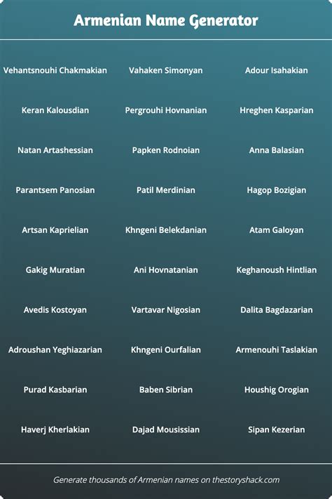 Web generate rich and culturally poignant armenian names for your creative work with this online tool. Web the armenian name generator is a wonderful tool that puts a creative spin on your search for the perfect armenian name. Web generate rich and culturally poignant armenian names for your creative work with this online tool. Web generate 10 random armenian names for male and female characters in fantasy, real life, or pop culture settings. Browse by categories such as mythology,. Web find out the origin, meaning, and popularity of armenian names for boys and girls. Web use this tool to generate random or unique armenian names for characters, babies, or anything else.