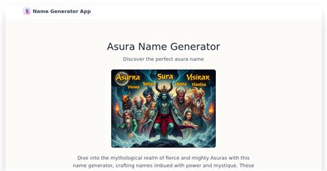 Asura Name Generator. Get inspired by our name generator and create your own asura names. Obviously (since they're the best, smartest and most.