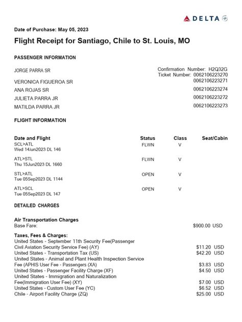 Delta Receipts For Past Travel Master of Documents