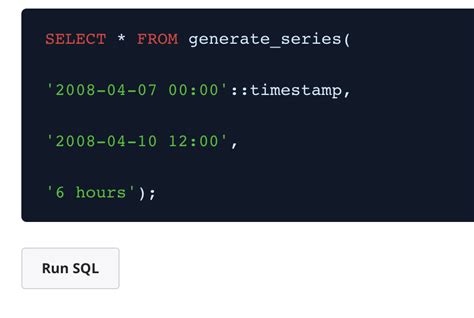 Generate_Series Postgresql. Web postgresql generate_series function accepts three parameters: Web postgresql overloads generate_series for both inputs.