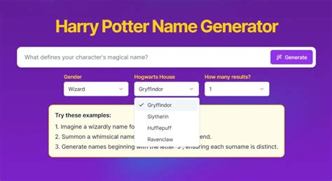 Web harry potter name generators, names for the various races of the harry potter universe.