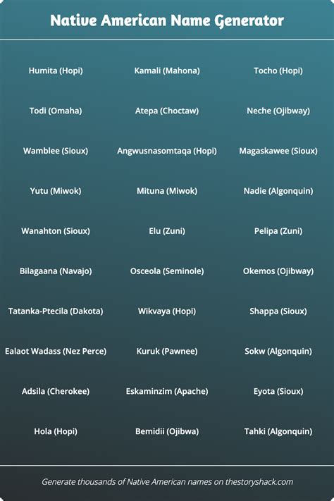 Native American Names Generator. Web discover the rich heritage and diversity of native american culture with our native american. Get a personalised name and.