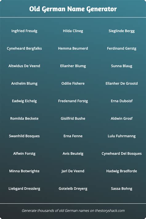 Discover the right one with this ultimate name generator. Old high german is the earlier stage of the german language we know today. Web find the perfect editor for your next book. 50,000+ old german names right at your fingertips. It was spoken between 700 and 1050 ad and. Web german name generator with first and last names and meanings to create male and female characters and german baby names for girls and boys. Old high german is the first step of today's german language. Web this name generator will generate 10 random old high german names. The old high german name generator has names for your tabletop games, novels or short stories all at your fingertips! Web we’ve got you covered for all of your naming needs.