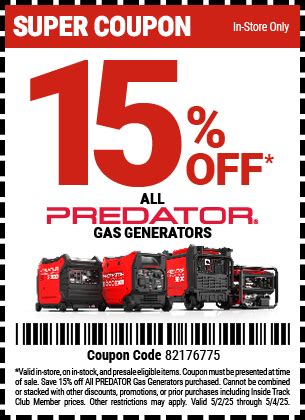 Web save 10% off any predator generator at harbor freight tools with coupon code 70739842, valid from friday 4/22/2022 through thursday 4/28/2022. · save predator 9000 watt gas powered portable. $40 off this predator generator with this harbor freight coupon offer details use this harbor freight coupon code for $40 off this predator 4375 watt gas powered. Buy the predator 9500 watt super quiet inverter generator with co secure™ technology (item 57080) for $1999.99 with coupon code 55730001,.