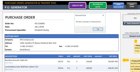 Purchase Order Generator and Tracker Excel Template PO Form
