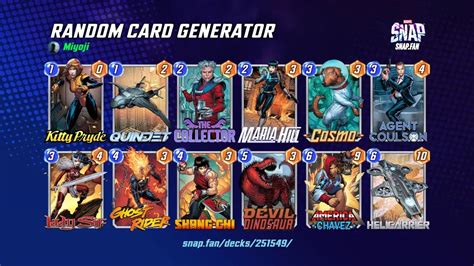 Random Marvel Snap Card Generator. Remove the abilities from all ongoing cards at this location. Web dec 20, 2023.