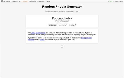 Random Phobia Generator. The others present have to make a guess at what fear they believe that phobia represents. Begin your exploration at random phobia generator.