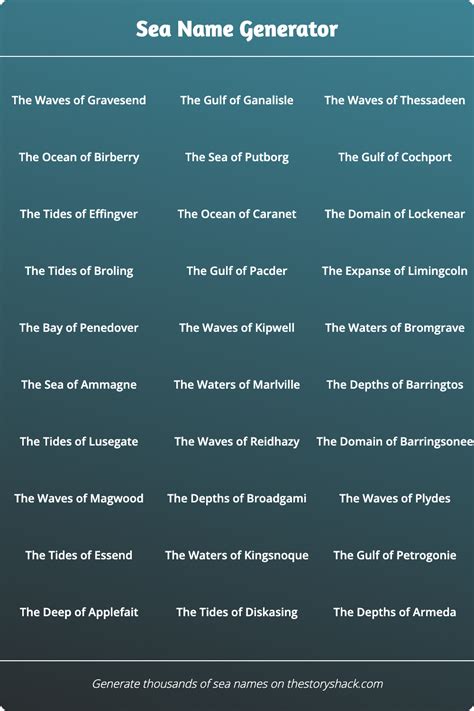 Sea Names Generator. There's, of course, a big. Web this name generator will give you 10 names fit for most (larger) bodies of water, like oceans and seas.