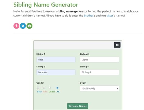 Sibling Baby Name Generator
