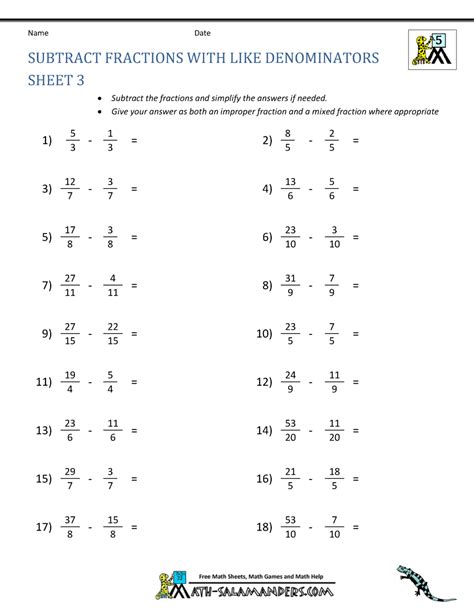 Subtracting Fractions Worksheets Math Monks